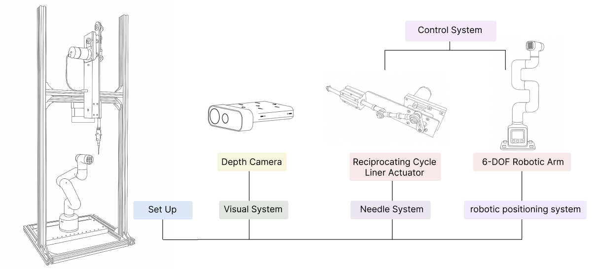The video demonstration shows the system randomly selecting ten points and moving the robotic positioning system beneath the needle system to process each point.